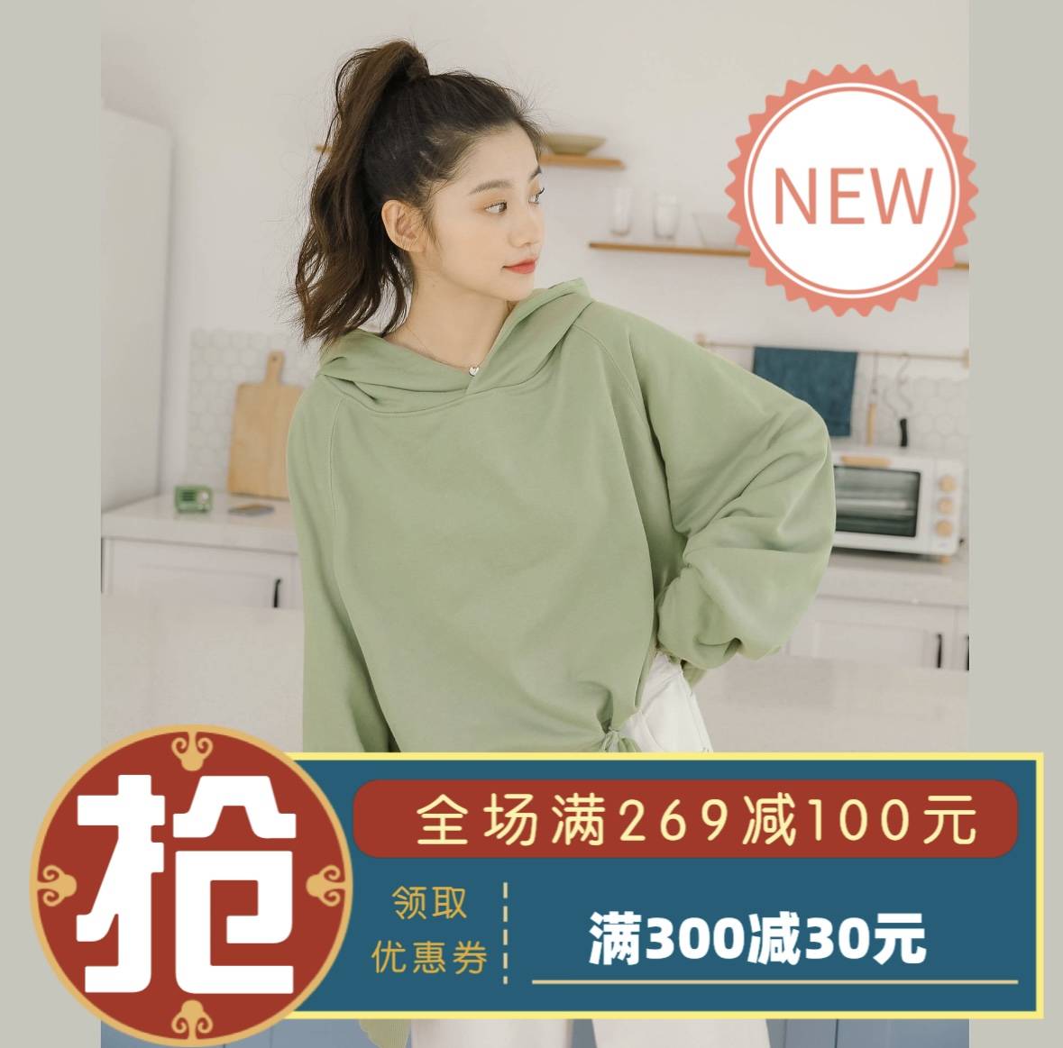 2019秋季新款ins韩版宽松纯色连帽系带短款全棉卫衣