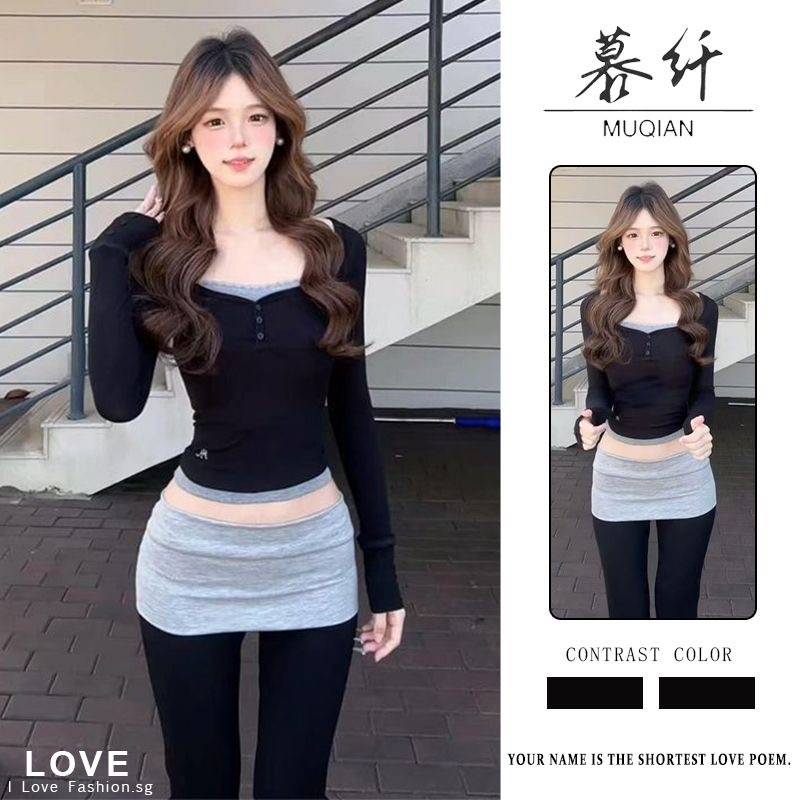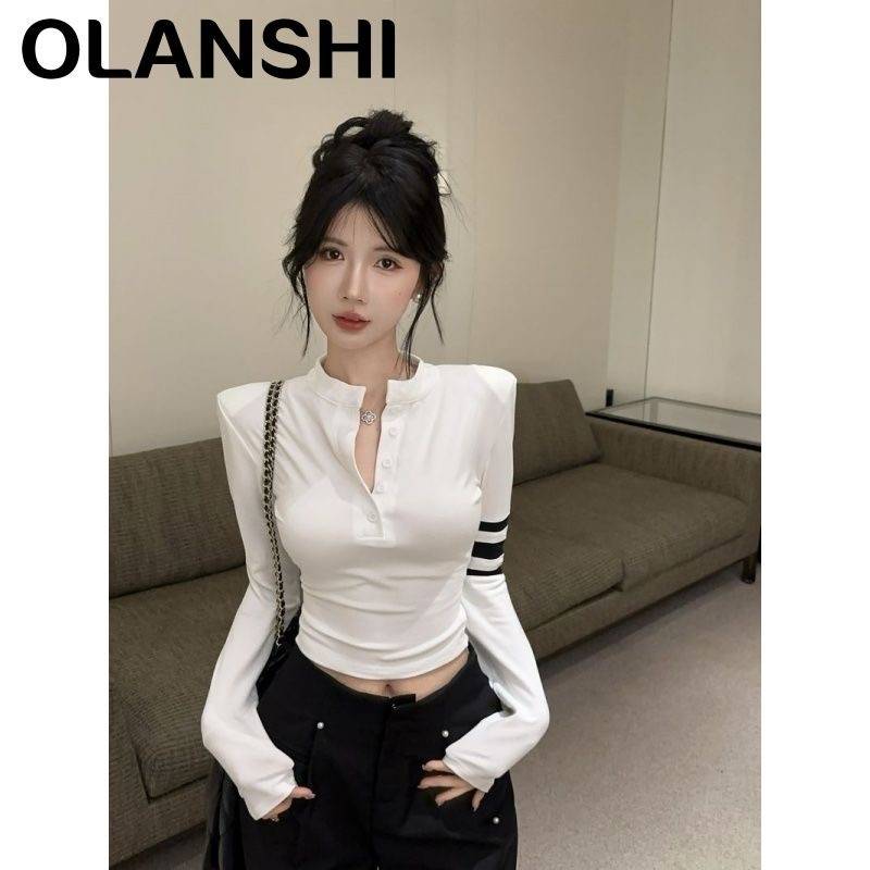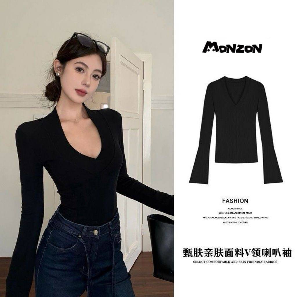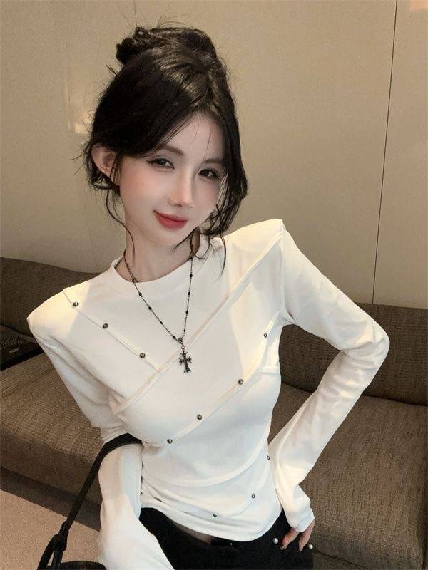 2019新款早秋长袖抽绳T恤女 韩版修身纯色舒适打底衫