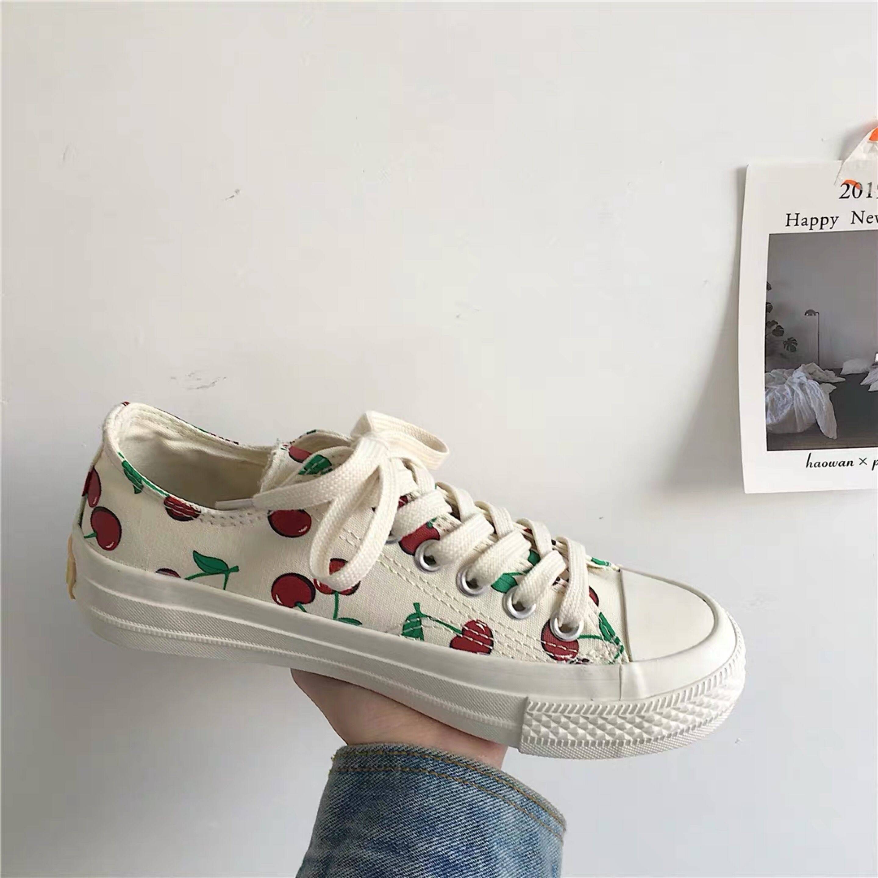 樱桃帆布鞋女学生韩版百搭网红爆款2023小白鞋春季新款高帮学【1