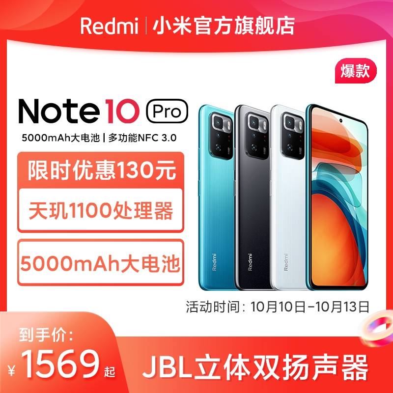 【特惠100元】小米/RedmiNote 10Pro 5G智能手机学生拍照手机游戏天玑1100