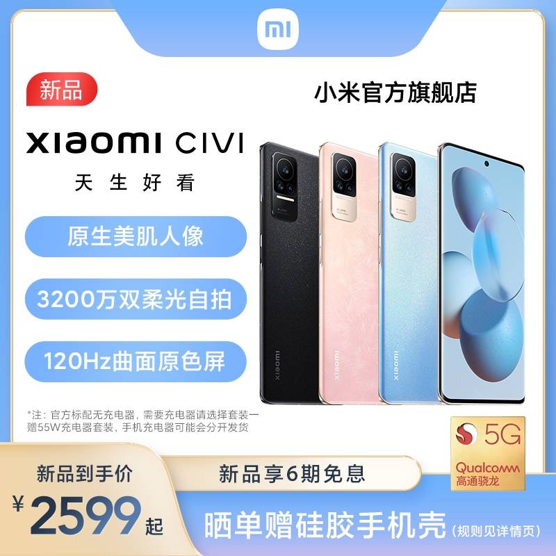 【新品享6期免息】XiaomiCivi小米新品5G智能手机潮流自拍轻薄双曲面屏游戏高通骁龙778G