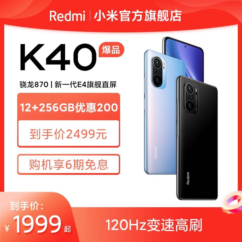 【12期免息+至高优惠230】 Redmi K40骁龙870 120Hz屏幕智能游戏电竞拍照手机