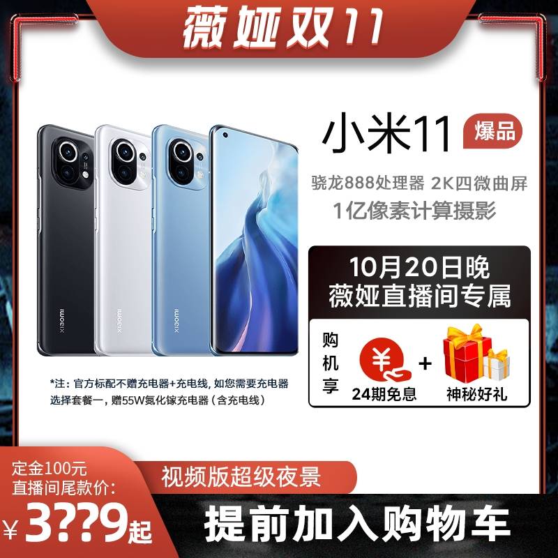 购机享24期免息小米11 5G手机骁龙888旗舰2K屏幕智能全面屏
