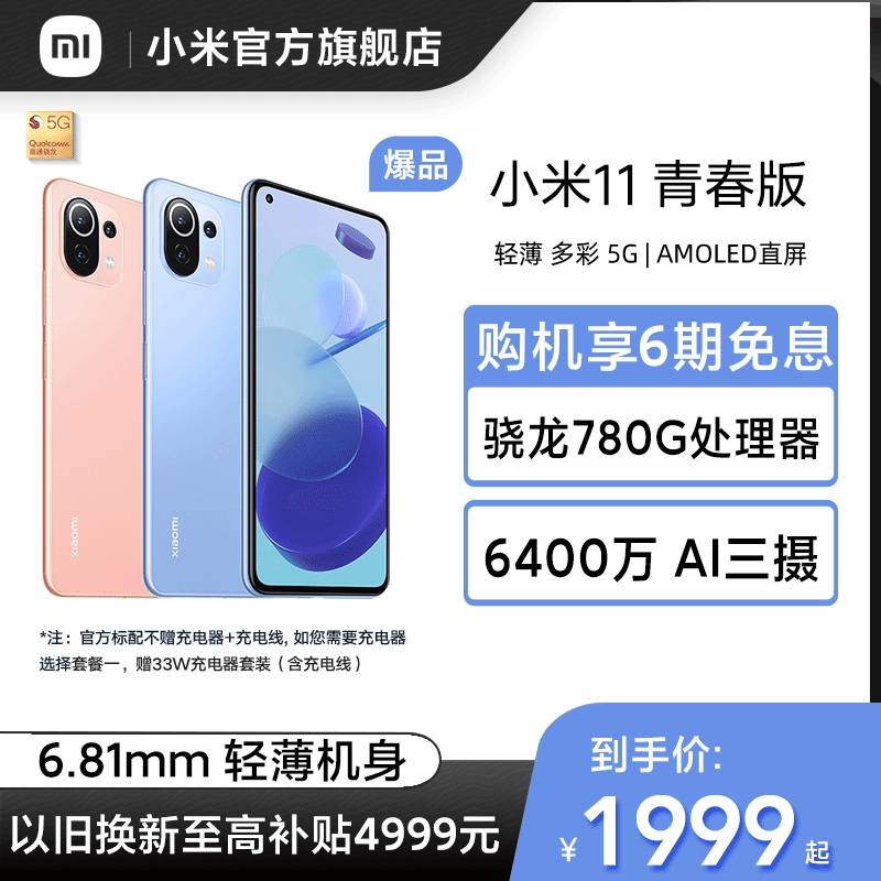 【购机享6期免息】小米11青春版5G手机轻薄学生手机骁龙780G