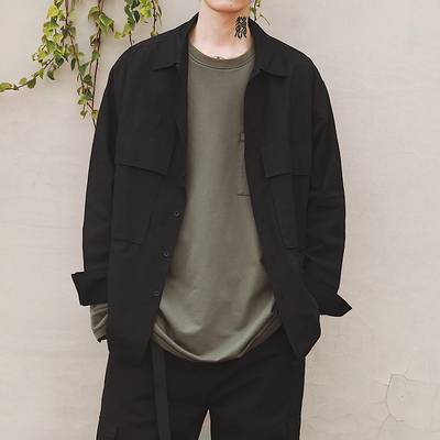 日系春季新款纯色原宿bf风宽松长袖衬衫男士简约气质休闲衬衣外套