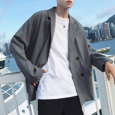 春季新款韩版简约纯色小西装外套男士bf风宽松气质百搭休闲西服