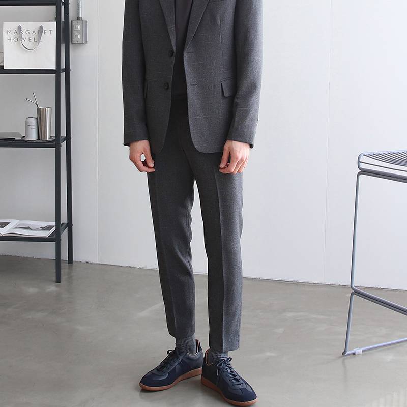 韩版西服裤子男2019新款方格纯色优雅修身绅士