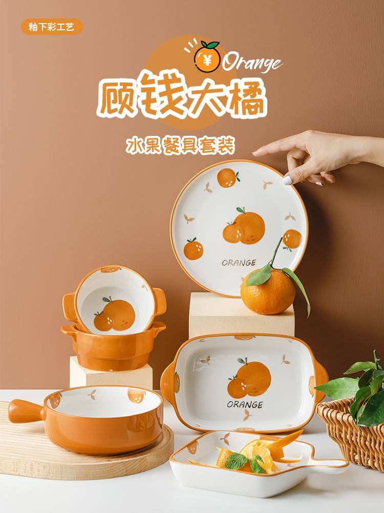 可爱橘子原创双耳烤盘家用焗饭盘子烤箱专用器皿网红好看菜盘餐盘