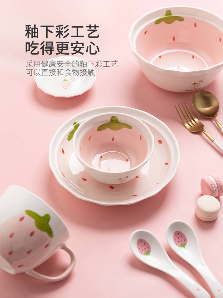 摩登主妇草莓碗陶瓷碗盘子碗套装可爱的碗少女心餐具儿童饭碗汤碗