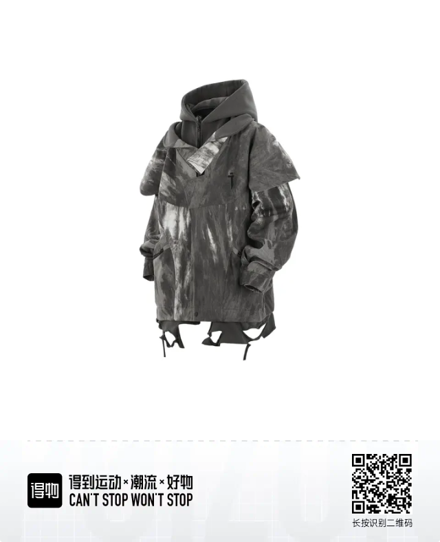 吉业重工 废土风下摆磨破假两件外套 可拆卸棉内胆棉服 男女同款