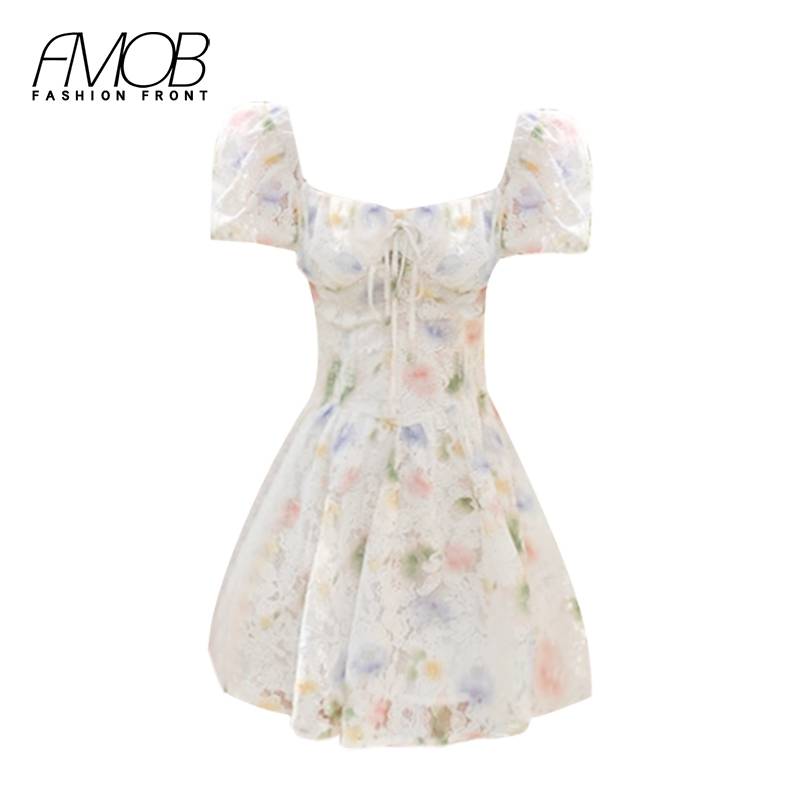 FMOB 英芍药/2022春夏甜美风收腰显瘦蕾丝镂空刺绣吊带连衣裙
