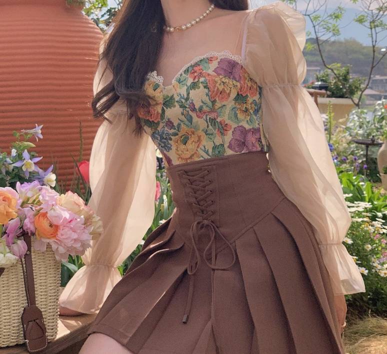 Acaine 梵高印象设计感女小众高腰显瘦半身短裙套装裙