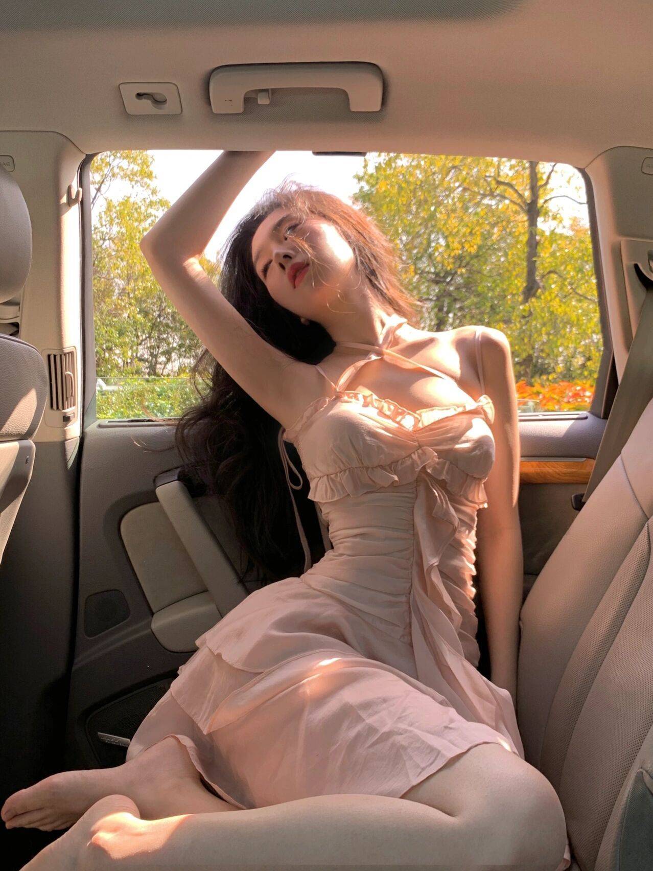 粉色花边连衣裙女夏季2022新款复古设计感收腰显瘦绑带吊带裙