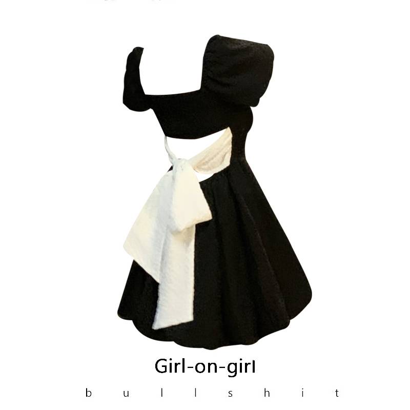toyoung叛逆小公主 甜酷蝴蝶结a字黑公主裙女小个子设计连衣裙夏