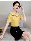 欧货时尚洋气娃娃领连衣裙女2021年夏季新款 气质收腰泡泡袖a字裙
