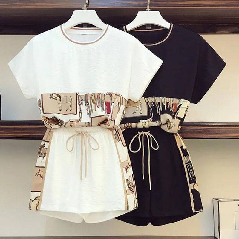 网红大码女装显瘦洋气时尚2022夏季短袖短裤两件套休闲运动套装女