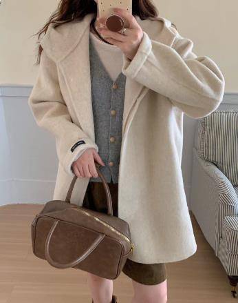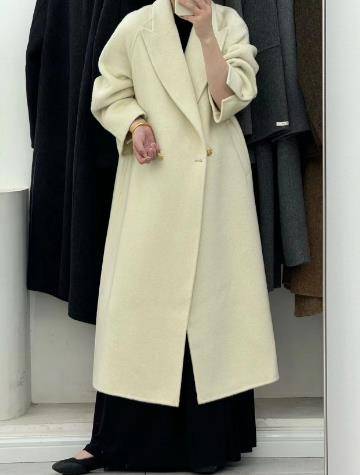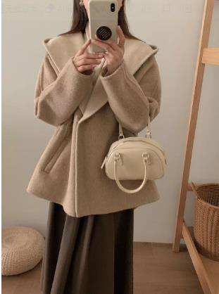 2024秋冬新款慵懒风羊毛毛呢外套高级感气质中长款双面羊毛大衣