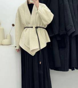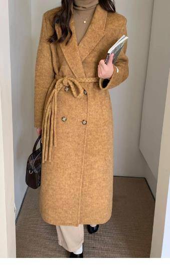 韩系气质垫肩编制腰带设计双面羊毛大衣2024秋冬高级感毛呢外套