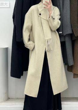 韩版简约慵懒风加长款过膝双面羊毛大衣2024秋冬可拆卸围巾外套