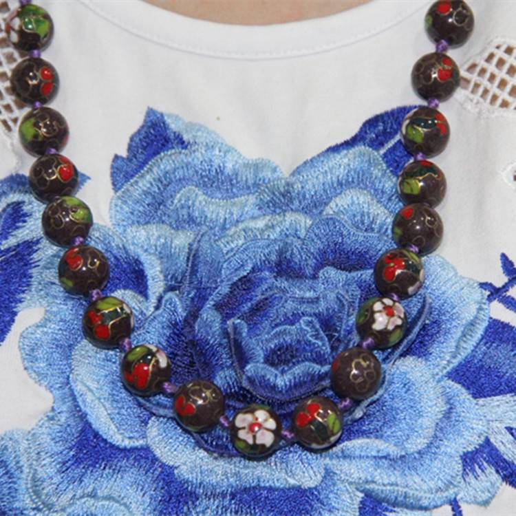 包邮北京特色手工艺品景泰蓝老货银蓝项链铜胎掐丝珐琅手工串珠子