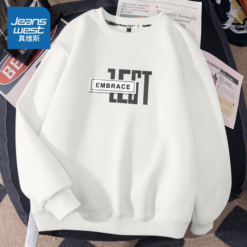 真维斯卫衣男潮牌春秋季新款外套简约字母薄款圆领套头宽松秋装