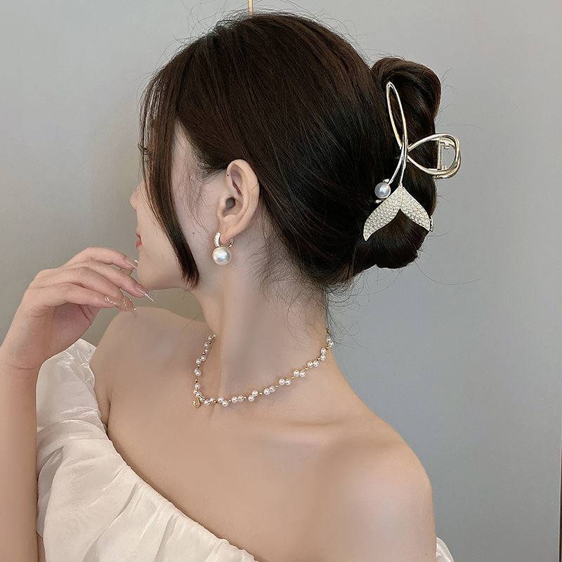 鱼尾抓夹女秋冬大号后脑勺高级感珍珠发夹鲨鱼夹子发卡2022年新款