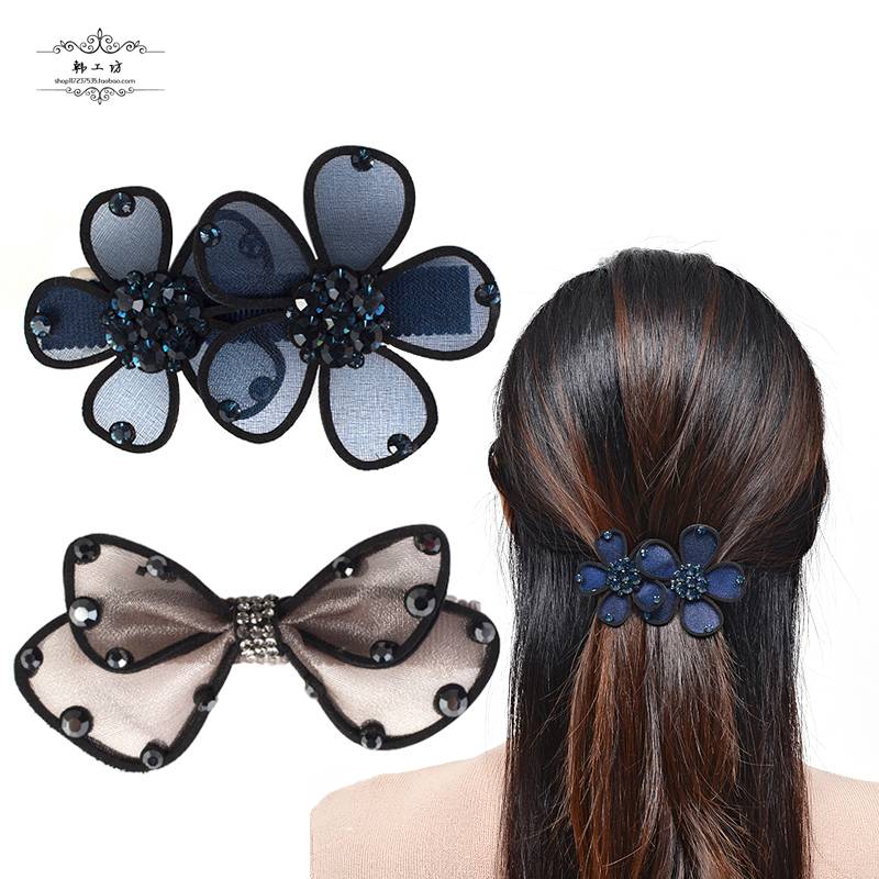 弹簧夹发饰发夹女妈妈后脑勺韩国头饰成人头发夹子水钻优雅马尾夹