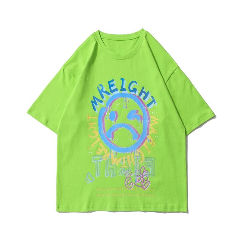 2021年新款涂鸦印花短袖T恤男生夏季潮流五分袖体恤