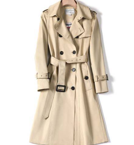 卡其色英伦风衣女装2021年新款春秋中长款工装双排扣高端外套大衣