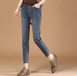 复古休闲中腰牛仔裤女2021新款秋装宽松显瘦小脚哈伦长裤