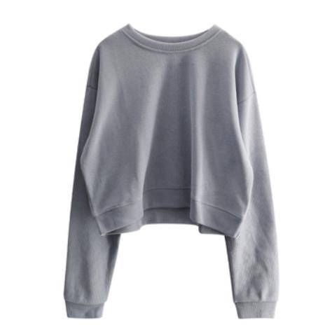 绒薄款纯色圆领卫衣女 高腰小个子雾蓝色显瘦宽松上衣短外套