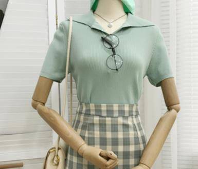 法式半开polo领短袖冰丝针织衫女夏新款气质净版短款翻领减龄上衣