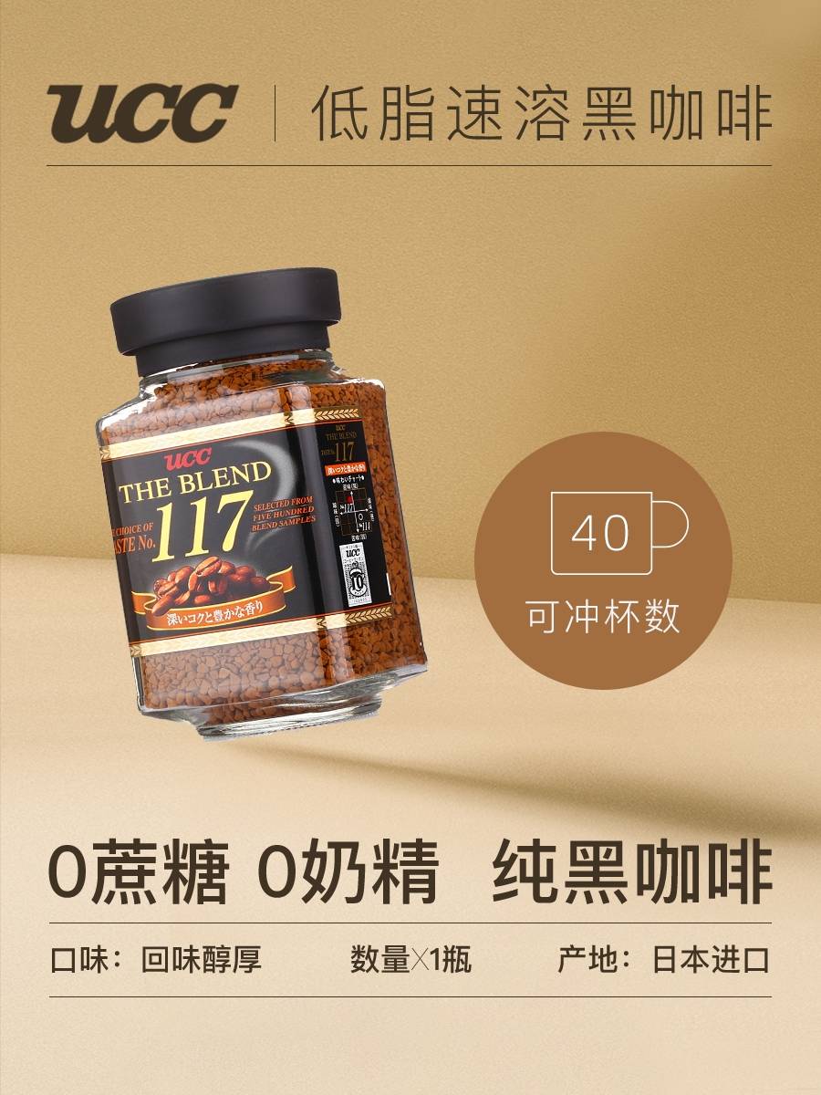 悠诗诗ucc117黑咖啡粉无糖冻干纯美式咖啡速溶咖啡黑咖啡
