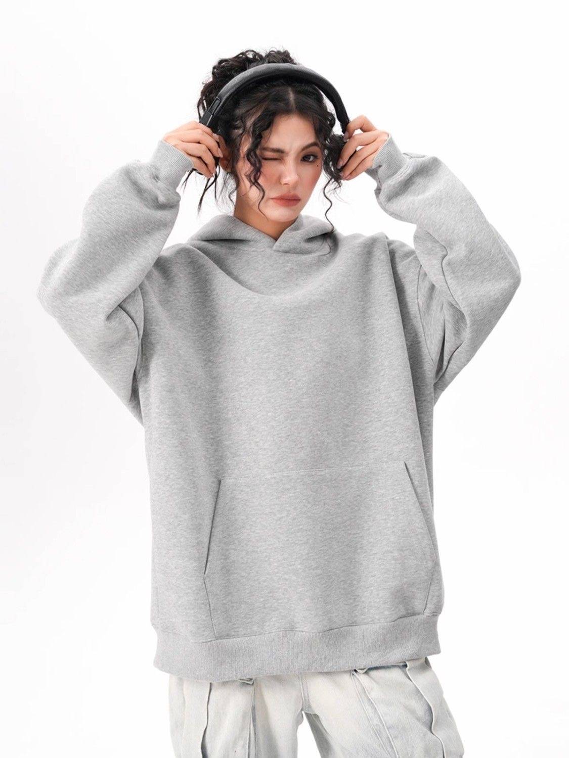 藏青色boxy短款加绒卫衣男秋冬高级感美式复古cleanfit连帽衫外套