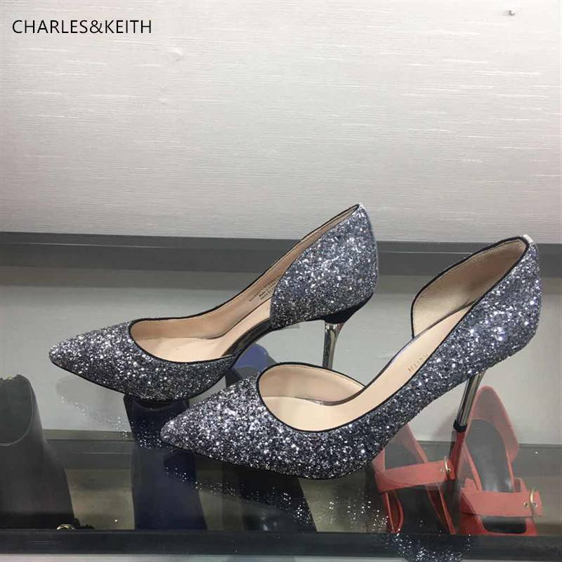 细跟高跟亮片婚鞋水晶单鞋