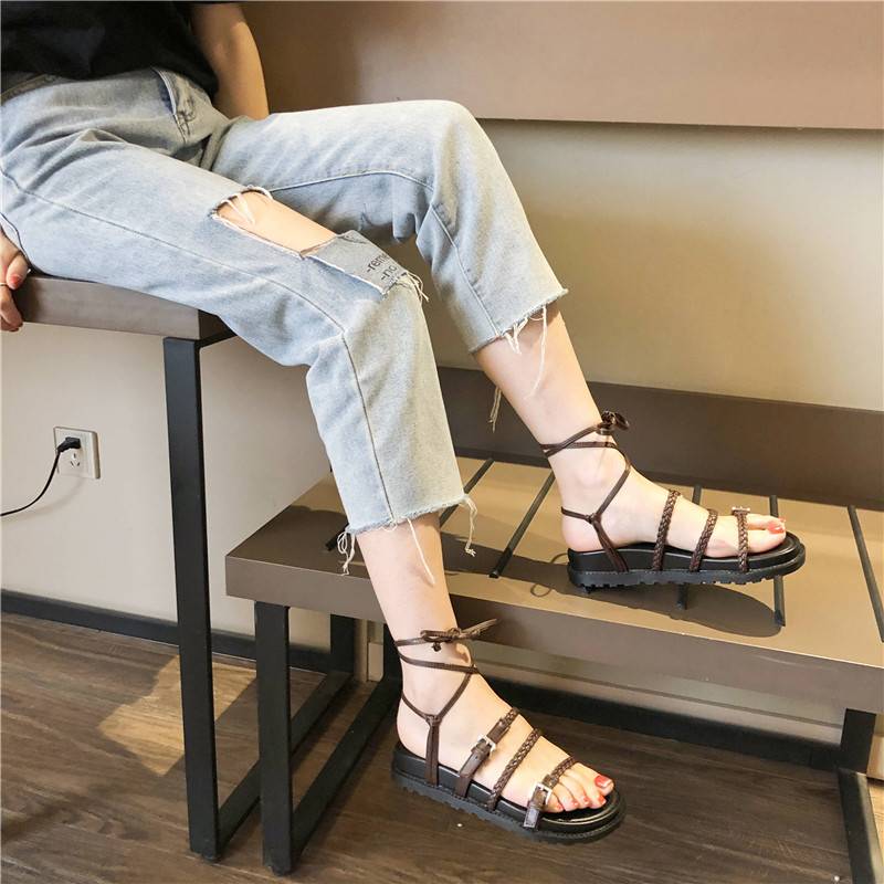 BT2019夏季新款绑带时尚平底女鞋百搭海边沙滩度假罗马凉鞋仙女风