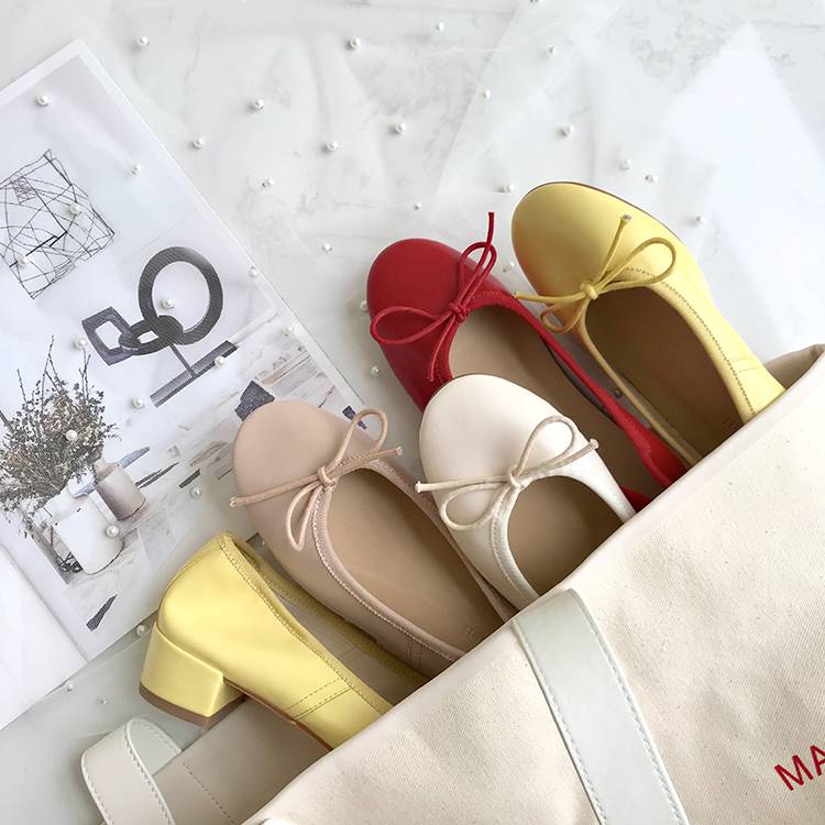 春新款格纹布磨砂感透明梯形跟清新优雅单鞋女