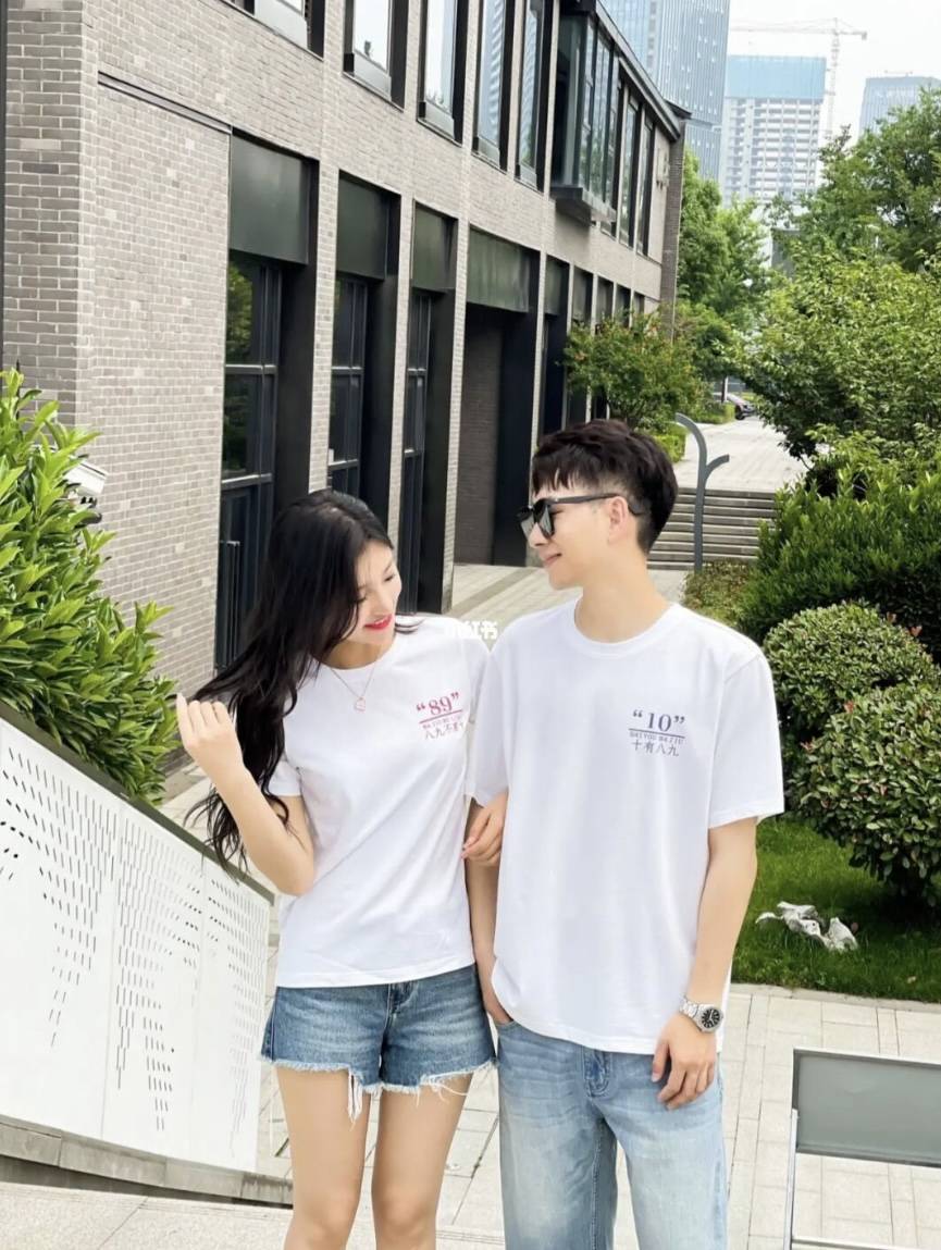 情侣装T恤夏装季2023新款潮牌高级感网红同色系法式短袖套装男女