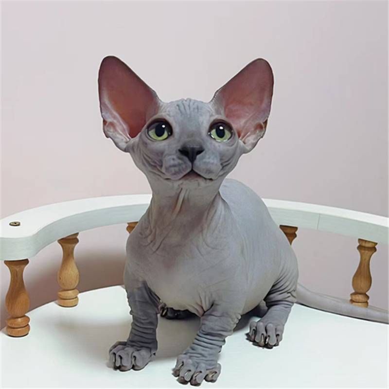 蓝皮无毛斯芬克斯幼崽纯种活体异瞳开脸白黑精灵耳双血统宠物猫