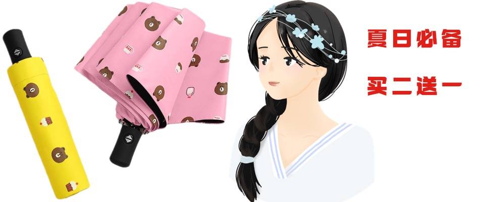 小熊雨伞 黑胶防晒遮阳女士卡通小熊太阳伞 三折全自动折叠晴雨伞