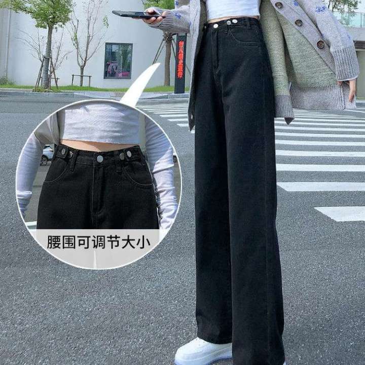 黑色加绒牛仔裤女裤学生裤春秋冬2021年新款高腰显瘦百搭阔腿裤子
