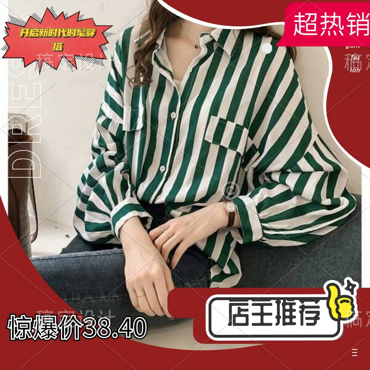 女装新款2022港味宽松大码bf条纹衬衫女长袖上衣薄款