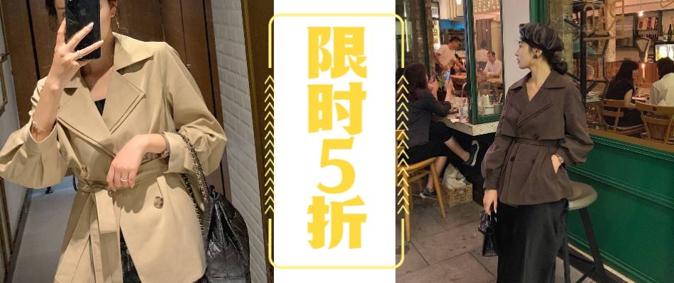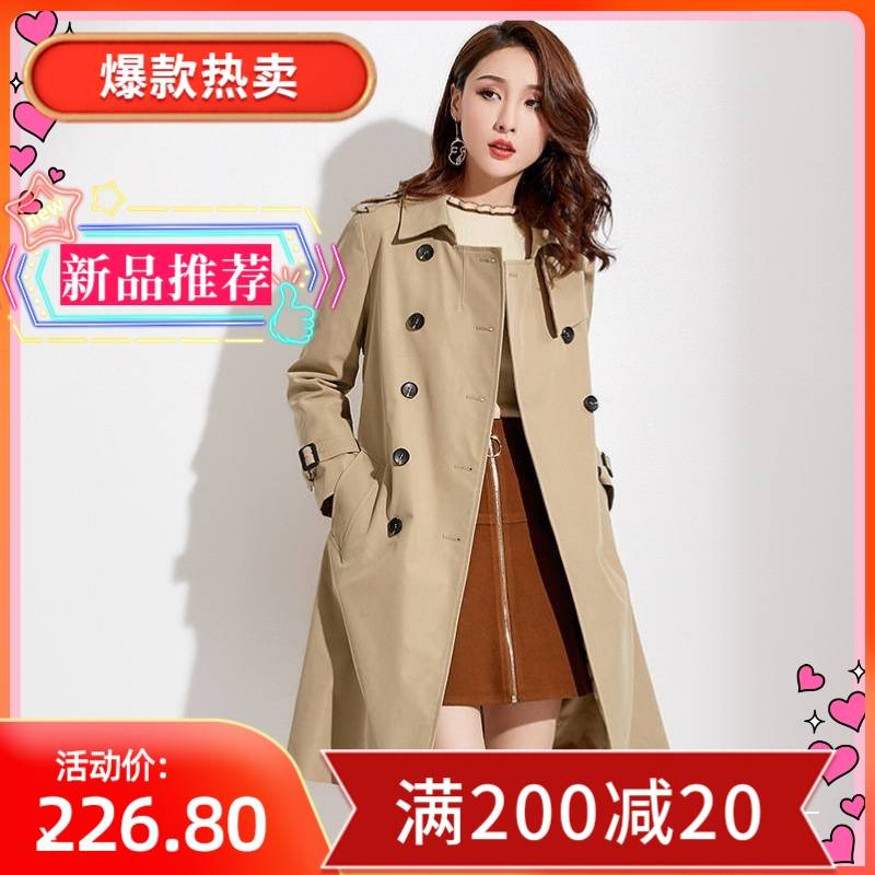 2022秋季新款品牌女装英伦气质纯色长袖西装领双排扣女式风衣外套