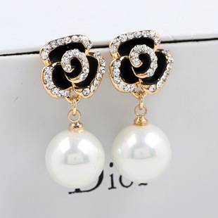 山茶花耳钉2023年新款潮珍珠耳环花朵设计感小众耳坠高级轻奢耳饰