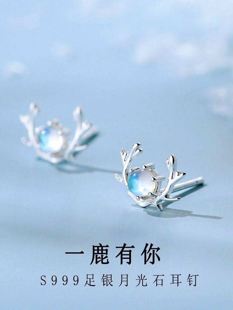 一鹿有你耳钉女999纯银小众设计感不掉色月光石新款耳饰520礼物