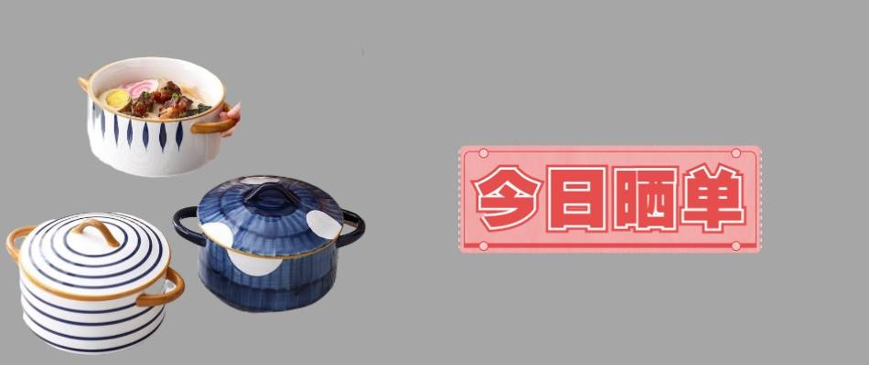 釉下彩陶瓷双耳带盖大汤碗家用北欧创意日式大碗面碗汤盆泡面碗