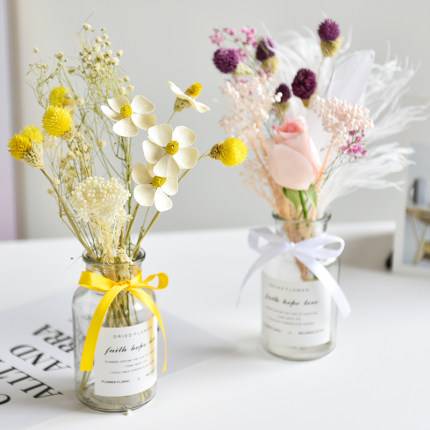 天然干花永生花束装饰摆件花瓶插花真花满天星客厅家居小摆设