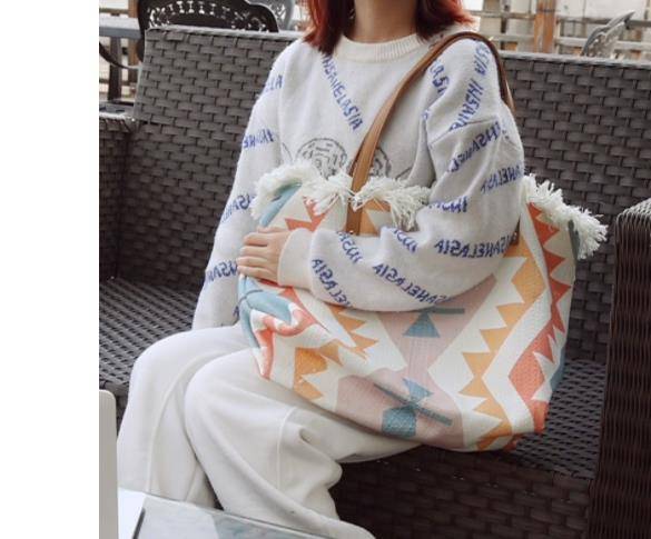 新款小众设计女包个性创意帆布包国风印花百搭大容量手提托特包