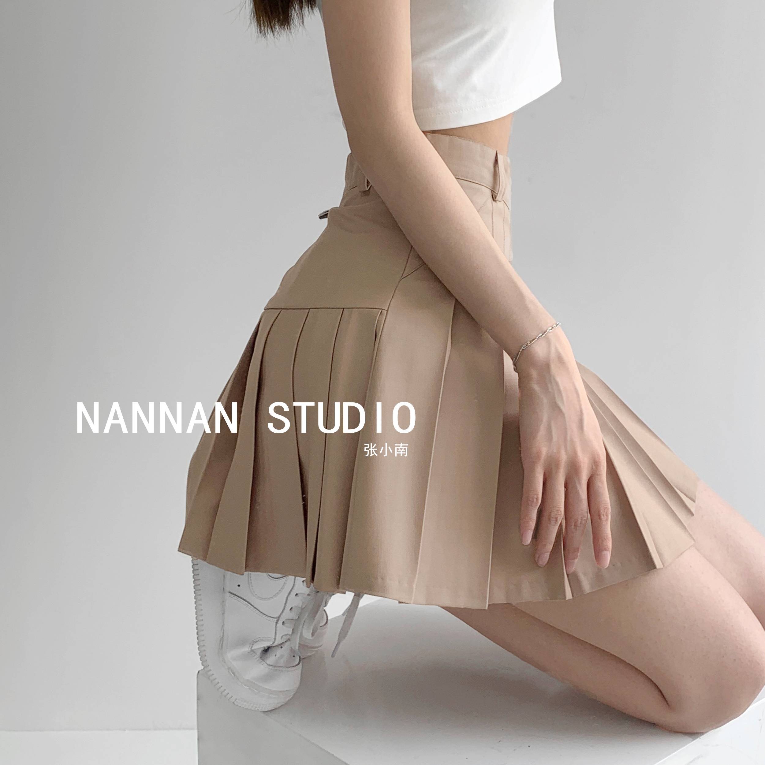 学院风少女西装料百褶裙防走光高腰A字半身裙ins潮春季显瘦TB短裙