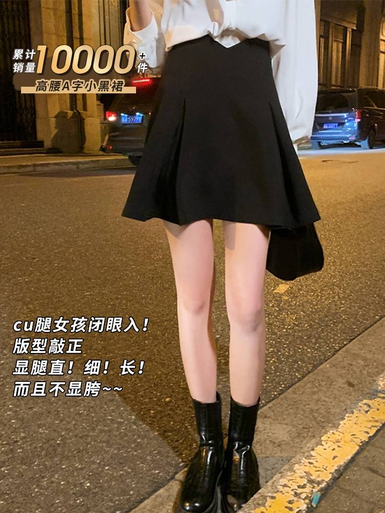 高腰显瘦小黑裙百褶短裙百搭半身裙女薄款2022春款a字裙